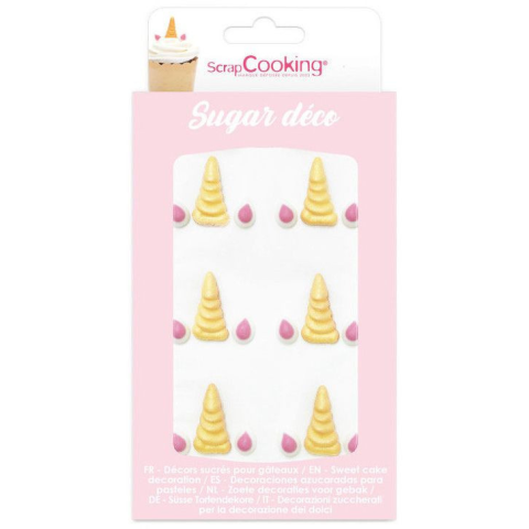 Scrapccoking cukordísz, unikornis, 6 db A ScrapCooking cukor díszek Unikornis Szarv & Fülek készlet tökéletes a unikornis torták tetejére. Tökéletes torta díszek, amik varázslatos hatást adnak a unikornis tortáknak.