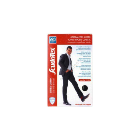 Scudotex 450 kompressziós térdharisnya (17-20 Hgmm) Visszérbetegségre, lábdagadásra, megterhelt lábra, utazáshoz, ülő és álló munkához ajánlott. 2 /S 38-39 3/M 40-41 4 / L 42-43 5/XL 44-45 zárt orral, fekete színben. EP elszámolható! Mérethiány esetén t