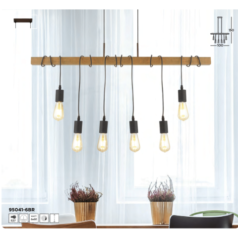 SEARCHLIGHT 95041-6BR Woody, Függeszték világítás 1 kép