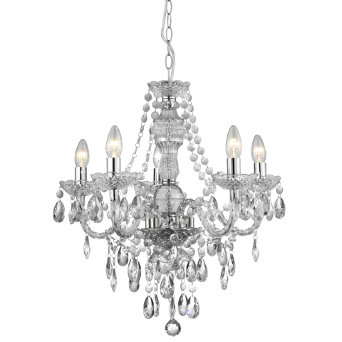 1 kép SEARCHLIGHT Marie Therese ezüst csillár (SL-8885-5CL) E14 5 izzós