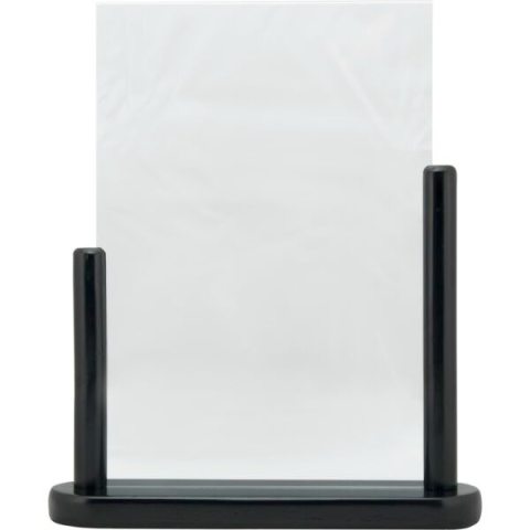 Securit akril asztali tartó fekete bükkfa talppal. Időjárásálló, kétoldalú és könnyen tisztítható. Lehetővé teszi a menü egyszerű cseréjét és frissítését.