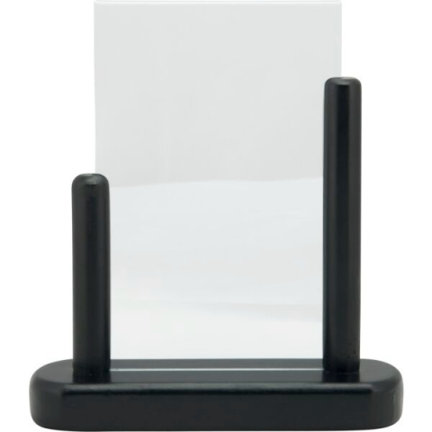 Fekete akril asztali menütartó Securit A6, bükkfa talppal. Időjárásálló. Kétoldalas és könnyen tisztítható. A menü könnyen cserélhető vagy frissíthető.