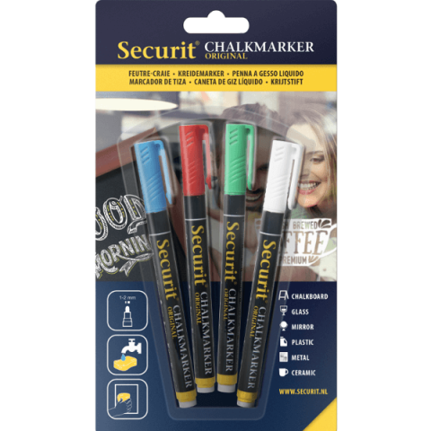1 kép Securit FOLYÉKONY KRÉTAMARKER SZETT 4 DB-OS KÉK-PIROS-ZÖLD-FEHÉR