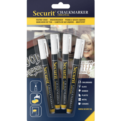 1 kép Securit FOLYÉKONY KRÉTAMARKER SZETT 4DB-OS FEHÉR