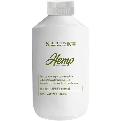 Sampon - hagyományos sampon, minden hajtípusra ajánlott, hidratáló, fejbőr viszketés elleni és tápláló hatás, színezékmentes, természetes olaj tartalmú és természetes összetevőjű, 250 ml-es kiszerelésben, vegán kozmetikum, természetes sampon A SELECTIVE PROFESSIONAL Hemp Lenitive Shampoo-t kifejezetten az érzékeny és irritált fejbőr kíméletes tisztítására és ápolására fejlesztették ki. Kenderolajtartalmának köszönhetően azonnali enyhülést
