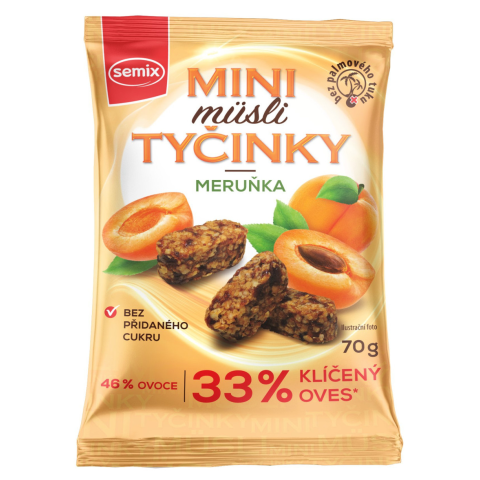Semix mini müzlifalatok csíráztatott zabpehellyel,sárgabarackos 70 g Imádni fogod ezeket a gluténmentes, sárgabarackos mini müzliszeleteket. HOZZÁADOTT CUKOR NÉLKÜLIek , tele vannak gyümölcsökkel, fő összetevőjük pedig a csíráztatott zab. Alakjuk és m