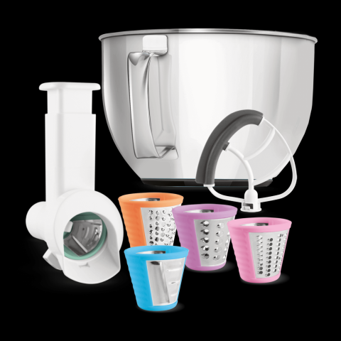 Konyhai robot tartozékok szett Kompatibilis a Sencor STM 635x készülékekkel Daráló és szeletelő feltétek Szilikonos keverőszár 4,5 Literes rozsdamentes acél keverőtál