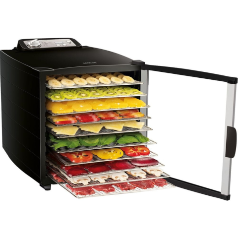 24 hónap garanciaNagy kapacitású aszalóép, összesen 1,11 m2 szárító felülettel (60%-kal nagyobb, mint a hagyományos 32 cm átmérőjű aszalógép felülete)Intuitív működtetés, forgó gombbal beállítható hőmérsékletTíz perces lépésekkel beállítható szárítási idő, gyorsan beállítható10 rozsdamentes acél tálca, maximálisan higiénikus1 tálca a RAW ételek készítéséhezHorizontal Air Flow: vízszintes levegő áramlási technológia: biztosítja az egyenlet
