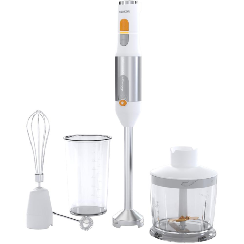 A Sencor SHB 6301Wh botmixer krémlevesek, szószok, bébiételek gyors elkészítésében nyújthat Önnek segítséget. Az 1200 W teljesítményű motor változtatható sebesség funkcióval lett ellátva. A Titanium Quad Blade Technológia alapján készült aprító pengék pedig forró ételek készítésére is alkalmasak. Az ergonomikusan kialakított markolat biztos és kényelmes fogást garantál. Az 800 ml-es fedeles keverőpohár segítségével nagy mennyiségű alapanyag is feldolg