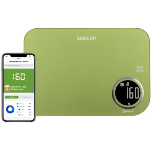 A Sencor SKS 7070Gg okos konyhai mérleg kiemelkedik a többi, hagyományos mérlegek közül köszönhetően Bluetooth adatkapcsolatnak és a Sencor Foog alkalmazásnak. Az alkalmazás összeköti Önt az egyik legnagyobb élelmiszer-adatbázissal. Segítségével a sportolók és az egészséges életmód hívei nyomon követhetik a kalóriabevitelt és az élelmiszerek tápanyag-összetételét. A mérleg konkrét áttekintést ad az egyes összetevők tápanyag-összetevőinek arányáról.