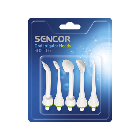 5 különböző fej a maximális szájhigiénia érdekében: Standard fúvóka - A normál tisztításhoz használható, eltávolítja a baktériumokat a fogak, valamint a fog és a fogíny közül. Fogszabályozó tisztító - Fogszabályozó viselése esetén, illetve foghidak tisztításához használható. Nyelvtisztító - A nyelv és a száj belső részének a tisztításához használható, eltávolítja a baktériumokat, az ételmaradékokat és az elhalt sejteket. Mélytisztító - A n