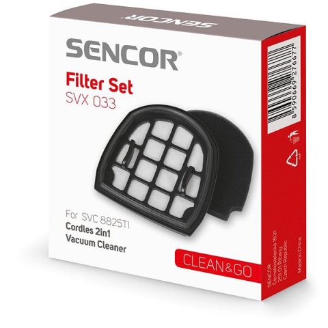 Porszívószűrő Sencor SVC 8825TI - hepa szűrő, 2 darabos csomag Legfontosabb tulajdonságok - SENCOR SVX 033 szűrőkészlet az SVC 8825TI készülékhez Sencor porszívó szűrő, amely magába zárja a port és egyéb szennyeződéseket, amelyet a készülék a takarítás során fel