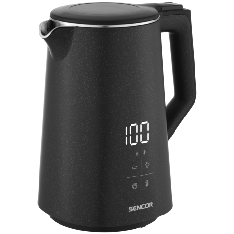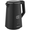 Vízforraló - hőmérséklet szabályozás, űrtartalma 1,7 l, fekete kivitel, 2200 W energiafogyasztás, bemeneti feszültség 230 V, érintéses vezérlés, duplafal, szűrő, strix csatlakozó, LCD kijelző, forgótalp, rejtett spirál és kábeltartó rekesz, automatikus kikapcsolás, túlmelegedés és víz nélküli működés elleni védelem, hőmérséklet megtartása, vízhőmérséklet és vízszint jelző, figyelmeztetés forráspont elérésekor, kivehető szűrő, anyaga műanyag V