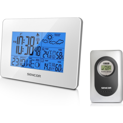 Időjárás állomás vezeték nélküli hőmérő és Hygrometer. Nagyméretű kijelző háttérvilágítással. Radió vezérelt óra. Idő, dátum, hónap, nap, hold fázis kijelzés. Választható 12/24 órás, ébresztő funkció. Beltéri hőmérséklet és páratartalom, külső hőmérséklet és páratartalom. Beltéri / kültéri hőmérséklet és páratartalom Memória. Max. / min. Memória. Kültéri hőmérséklet figyelmeztető funkció. Comfort index kijelzés. Időjárás-előrejelzés. Akár 3 Vezeték nélküli érzékelőt is lehet csatlakoztatni.