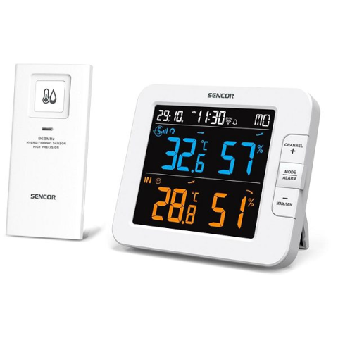 Intelligens többcsatornás mérőállomás vezeték nélküli érzékelővel 7 csatornás hőmérséklet és páratartalom mérő állomás Együttműködik a Sencor HOME mobilalkalmazással Együttműködik a Tuya Smart és a Smart Life mobilalkalmazá