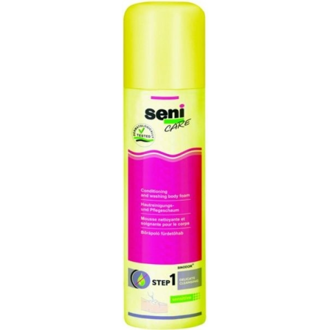 Seni Care bőrápoló fürdetőhab, gyengéden tisztít és védőréteget képez a bőrön. Tisztítja és kondicionálja a bőrt, amely különösen az inkontinens személyeknél a nedvszívó termékek cseréje miatt irritációra hajlamos. Természetes anyagokban gazdag, melye...