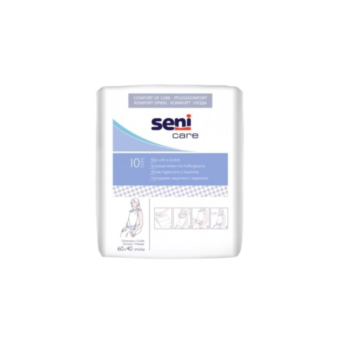 Seni Care előke Seni Care etetőelőke (40x60cm) - 100db Seni Care egyszer használatos zsebes etetőelőke cellulóz anyagból polietilén fólia borítással. Eldobható előke, 40x60cm-es méretben, 100 db-os csomagban vásárolható. Előke tulajdonságok: Az előke