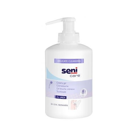Seni Care hidratáló tusfürdő Seni Care tusfürdő - 500ml Hidratáló tusfürdő, 3% Urea tartalommal, csökenti a bőr feszülő érzését, anélkül hogy megzavarná annak pH értékét. Pumpás kényelmesen, egyszerűen adagolható flakonban, 500 ml-es csomagban vásárolh
