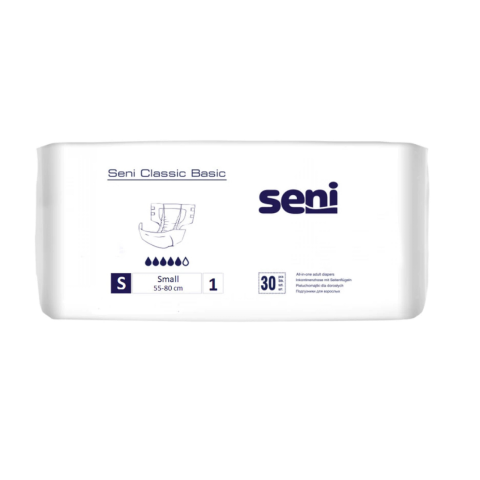 Seni Classic Basic Large egyszerhasználatos légáteresztő nadrágpelenka középsúlyos és súlyos inkontinencia kezelésére.
