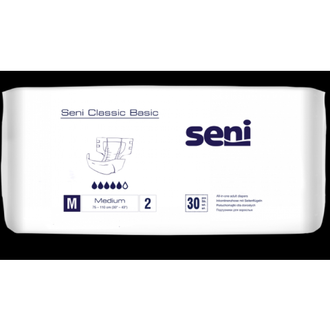 Seni Classic Basic Large egyszerhasználatos légáteresztő nadrágpelenka középsúlyos és súlyos inkontinencia kezelésére.