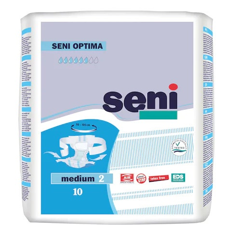 Seni Optima nadrágpelenka állítható övrésszel középsúlyos inkontinenciában szenvedőknek. A Seni Optima használható, mind vizelet mind széklet inkontinencia esetén. - Ideálisan igazodik a test vonalához (köszönhetően az állítható elasztikus övrésznek elől