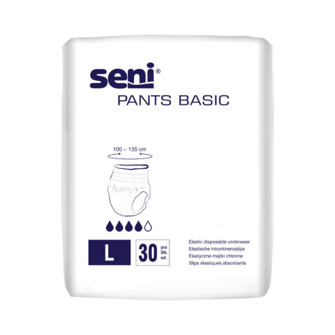 A Seni Pants Basic egy légáteresztő, rugalmas pelenkanadrág, amelyet úgy lehet fel- és levenni, mint a hagyományos fehérneműt. Oldalt felszakítható varrásokkal, dupla nedvszívó maggal (szuperabszorbenssel) és folyadéktaszító, oldalsó szivárgás elleni v