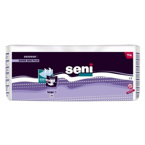 Seni super plus felnőtt nadrág pelenka Seni Super plus pelenka L (3200ml) - 30db A Super Seni Plus „éjjeli nadrágpelenka, vagyis megnövelt nedvszívó képességgel bír. Alkalmazásuk a két pelenkacsere közötti hosszabb szünet szükségessége esetén ajánlott,