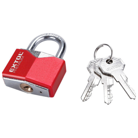 1 kép SEO-3651 Extol piros színű rombusz alakú vas lakat 3 darab kulccsal