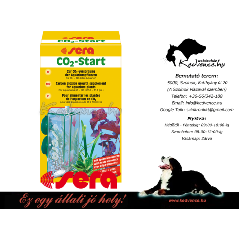 Támogatja az akváriumi növények növekedését Ellenőrzötten 100ml CO2-vel látja el az akváriumot tablettánként Kis helyigénye ellenére maximális teljesítményt nyújt Akváriumi CO2 (Szén-dioxid) - Sera CO2 Start Szett Kényelmes és egyszerű CO2 trágyázás