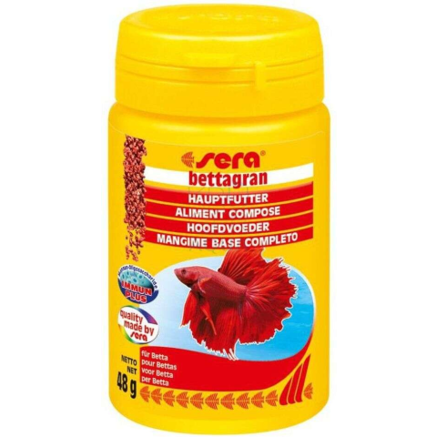 A Sera Bettagran teljes értékű eleség a sziámi harcoshalak számára. Megfelelő fehérjetartalmával és egyéb természetes színerősítőivel segíti a fejlődést.