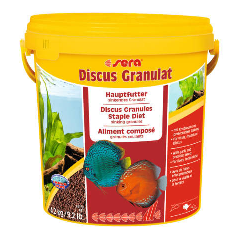 Sera Discus Granulat - granulatum táplálék díszhalak részére (4,2kg)Általános granulátum valamennyi diszkosz hal számáraA sera Discus Granules alapanyag gondosan előállított puha granulátumból áll, amely minden diszkosz halhoz (beleértve a fiatal halakat) és más igényes díszhalakhoz is felhasználható.Etetési javaslatNaponta egyszer vagy kétszer táplálja, csak annyit, amennyit az állatok rövid időn belül felvesznek.