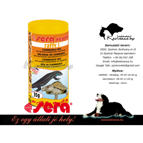 Tenős eledel mix, ízletes Gammarusban gazdag Sera Raffy I Teknős eledelA Sera Raffy I gammarus-mix gammarus-rákokat, szardellát és garnélarákokat tartalmaz – ez is egy ínyencfalat a szárazföldi és víziteknősöknek, illetve kistestű hüllőknek, mint példá