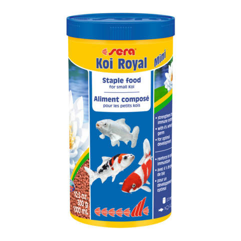 Sera Koi Royal HF Mini - Főtáplálék Koi Pontyok részére (1000ml)A Sera Koi Royal Mini (2 mm / 0,078 hüvelyk) az alapanyag, amely gondosan feldolgozott granulátumból áll az összes Koi számára.Kiegyensúlyozott szénhidrát / fehérje aránya és 4% búzacsírainak aránya miatt nagyon könnyen emészthető és egész évben kiválóan alkalmas egészséges táplálkozásra. A Koi követelményei optimálisan teljesülnek.Az olyan értékes összetevők, mint az omega-zsírsavak és a