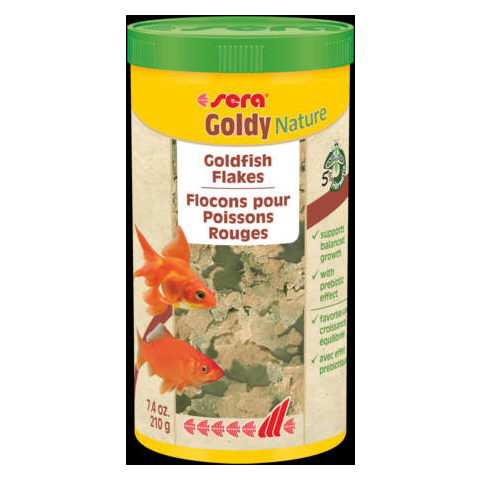 Sera Nature Goldy - táplálék aranyhalak részére (250ml)Lemezes táplálék az egészséges növekedésért és a gyönyörű színekértA sera Goldy Nature a kisebb aranyhalak és azok divatos változatai, például a shubunkin, a veiltail vagy a sarasa, valamint más hidegvízi halak alapétele, amely nem igényel festékeket és tartósítószereket.Kiváló minőségű fehérjeforrásként rovarlisztet tartalmaz.A növényi és állati összetevők kiegyensúlyozott aránya biztosítja a