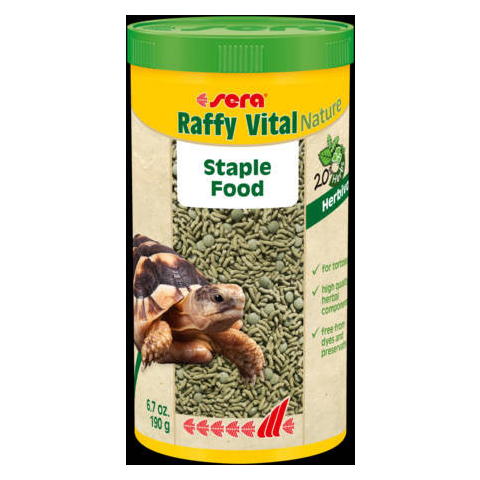 A Sera Nature Raffy Vital egy növényevő hüllők részére kifejlesztett táp, amely az alapvető tápanyagokat biztosítja a hüllők egészségének támogatásához. A termék összetétele kifejezetten a növényevő hüllők igényeire van optimalizálva, magas rost- és vitam