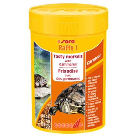 Sera Raffy Mineral l. - Hüllőtáp (100ml)Megfelelő fajta, rengeteg ízletes Gammarus-salA Sera Raffy I a természetes, finoman szárított Gammarus (87%), a kis halak és a krill terápiákra és más (esetenként) húsevő, kisebb hüllőkre és kétéltűekre épülő csemege.A természetes élelmiszer-spektrumot képviselő keverék gazdag optimálisan emészthető fehérjékben, omega-zsírsavakban, értékes karotinoidokban, ásványi anyagokban és nyomelemekben, valamint az emésztést