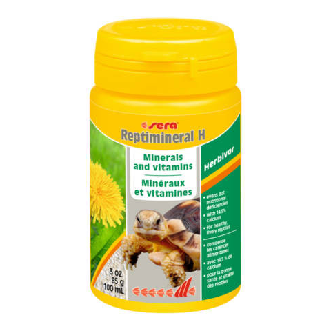Sera Reptimineral H - hüllőgondozószerek (100ml)Plusz ásványi anyagokban és vitaminokban a növényevők számáraA sera Reptimineral H egy kiegészítő élelmiszer, amely koncentrált ásványi és vitamin keverékből áll minden növényevő hüllő számára.A finom por könnyen adagolható és kiválóan tapad a friss ételekhez, például a salátahoz.Az alapvető ásványi anyagok (beleértve a 14,5% kalciumot), a nyomelemek, a vitaminok és az aminosavak kiegyensúlyozott mennyis