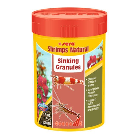 Sera Shrimps Natural - táplálék Garnéláknak és Rákoknak (100ml)A kiegyensúlyozott összetétel természetes összetevőkkel, például Spirulina és égerkúpokkal mindent megtesz a garnélarák számára az egészséges növekedéshez és a biztonságos bőrkiürüléshez. A termékenységet, a pompás elszíneződést és a betegségekkel szembeni ellenállást irányított módon erősítik.A süllyedő kis szemcsék nagyon hosszú ideig stabilak maradnak, így a garnélarák - termé