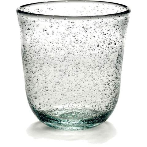 Átlátszó Serax pohár alkoholmentes italokhoz, 200 ml űrtartalommal és buborékos mintázattal. Ez a pohár ideális alkoholmentes italok felszolgálásához. A Serax egy belga márka, amely a dizájnos konyhai edények, lakberendezési kiegészítők és bútorok terén ikonná vált. A buborékos mintázatú pohár mindennapi használatra és ünnepi alkalmakra egyaránt alkalmas.