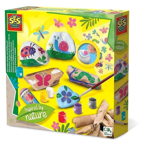 Kavics festés - a csomag része ecset, matricák, 3 kavics, 6 szín, ajánlott 5 éves kortól A SES ECO kavics és ág festés egy gyerekeknek szánt készlet, amely serkenti a kreativitást és a természet iránti érdeklődést. A készlet kavicsokat és ágakat tartalmaz vászonként a kis művészek számára