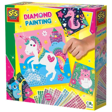 SES Gyémántfestés - Boldog állatok Ajánlott 3-6 éves korig lányoknak [Cikkszám 78706]A SES Creative márka, amely holland eredetű, több mint 40 éve foglalkozik kreatív játékok, köztük kézműves, festő- és barkácsjátékok fejlesztésével, kifejezetten gyerekek számára. A gyémántfestő készlet tökéletes választás a kis alkotók számára, hiszen a játék szórakoztató módon segíti a motoros készségek és a kreativitás fejlődését. Az extra nagyszámú gyé