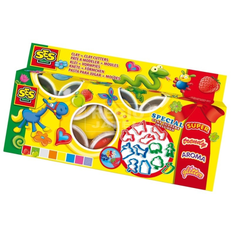 Gyurmázz, formázz, alkoss szobrokat! A SES Gyurma 8 tégelyes készlet formákkal készletben két tégely illatos, csillámos, divatos színű és könnyen formázható gyurmát rejt magában, különféle formájú vágószerszámokkal. A fórmákkal házikót, állatokat, növényeket és embereket tudsz készíteni, a gyurmákat össze is tudod keverni, hogy új színkombinációkat is alkothass. A Gyurma 8 tégelyes készlet formákkal összesen760 g SES gyurmát tartalmaz. Csomagolás m