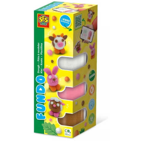 SES Móka gyurma farmállatok Ajánlott 3-6 éves korig unisex [Cikkszám 12205]SES Creative brand gyurma terméke, a SES FUNDO Móka gyurma Farmállatok készlet, ideális választás a kis művészek számára. Ez a vegán és biztonságos összetevőkből készült gyurma lehetővé teszi, hogy a gyerekek bájos farmállatokat, például tehenet, nyuszit és malacot formázzanak. A termék célja a kreativitás és a kézügyesség fejlesztése játékos formában. A csomagban fehér, róz