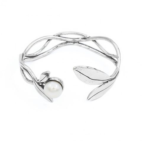 A karkötő szélessége a leveleknél 28 mm, a gyöngynél 22,5 mm. A karkötő elöl nyitott, szélessége hátul 10 mm. A tenyésztett gyöngy 10,5 mm átmérőjű. A karkötő belső átmérője a képeken 16 cm, kisebb csuklóra javasoljuk.
