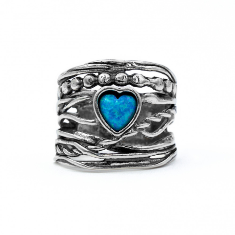 1 kép Shablool Izraeli ezüst opál köves gyűrű "szív"