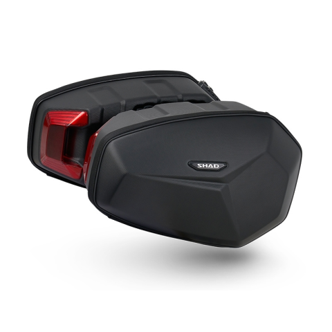 Az E48SR oldaltáskák zárrendszerrel és kulcsokkal rendelkeznek az SR illesztéshez, amely lehetővé teszi a fő rekesz kombinációs zárral történő lezárását. Az SR oldaltáska tartó rendszer tökéletes esztétikai integrációt kínál a motorkerékpárhoz, és erős és könnyű illeszkedést biztosít poliamidból és üvegszálas anyagból készült. Minden táska 15 literes kapacitással rendelkezik, könnyen szállítható a piros hangsúlyos darabnak köszönhetően, amelybe