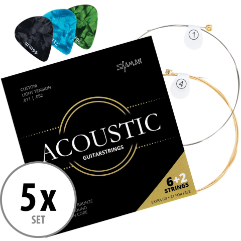 1 kép Shaman Akusztikus Húrok Akusztikus Gitárhoz 2 Póthúrral És 3 Pengetővel 5X Szett