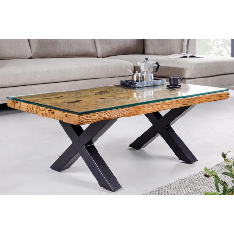 Dohányzóasztal Shark X 110 cm teak Ez a dohányzóasztal valódi mestermű, amely újrahasznosított anyagokból készült. Minden asztallap saját történetet mesél el, régi fából készül, természetes barázdákkal és erezette
