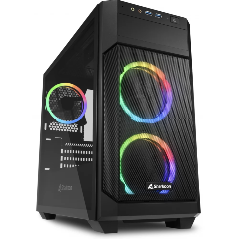 Kicsi de barátságos megjelenésű Micro-ATX szabványú fekete színű számítógépház. - Tápegység nélkül - 2 db USB3.0 csatlakozó az előlapon - Méretek: 45.0 x 19.5 x 40.2 cm - RGB világítású ventilátorok