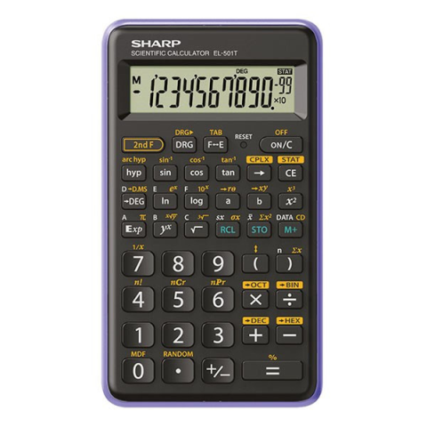 Számológép tudományos SHARP EL-501XBVL 146 funkciós 12 digit lila 131 tudományos funkció, 10+2 számjegyes (1 soros), D.A.L., normál, komplex, statisztikai üzemmód, konstansok, láncolt számítások, időszámítás, véletlenszám, egyváltozós statisztikai szám